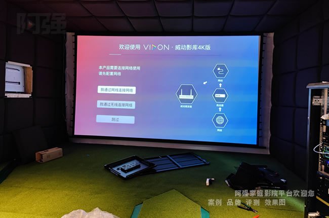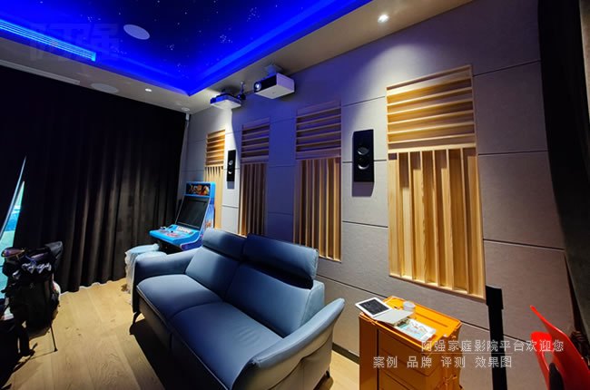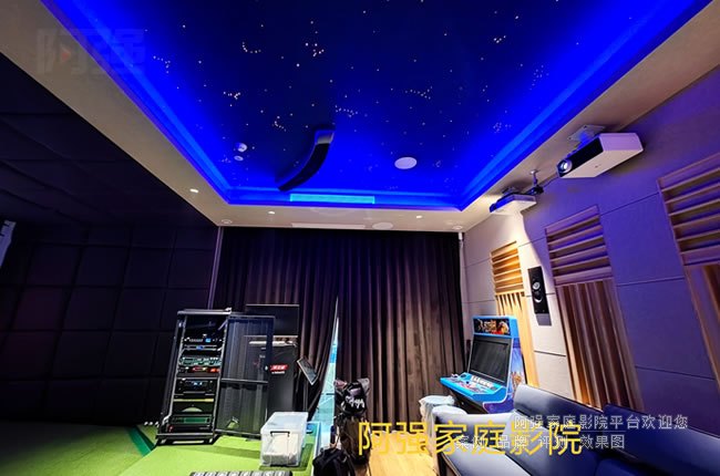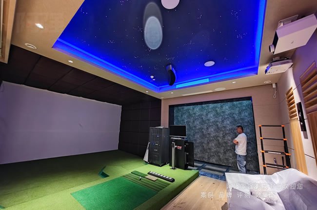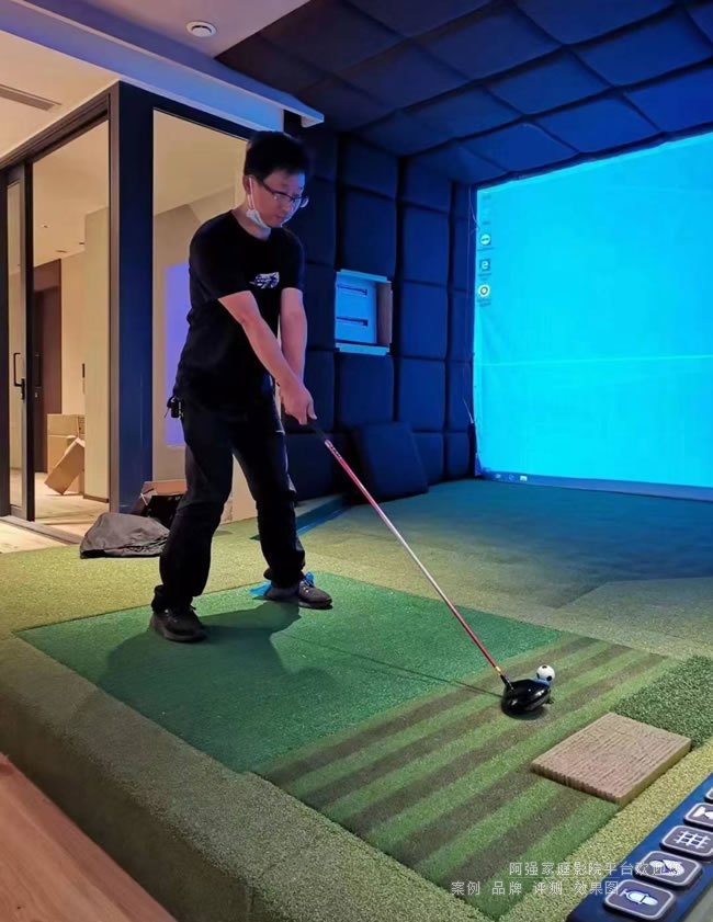 對于高爾夫模擬場景,還需注意投影幕布材質(zhì)。抗環(huán)境光幕能提升對比度,而帶有微細紋理的幕面可增強立體感,使虛擬球道更接近真實場地效果。若預(yù)算允許,可優(yōu)先考慮激光投影方案,其長壽命和穩(wěn)定亮度特別適合高頻使用場景。如果對觀影畫質(zhì)要求高,可啟用另一套適合觀影的家用投影機和專用投影幕,兩者進行融合。你今天看到的這個案子就是采用兩套視頻系統(tǒng),采用了兩套投影和投影幕。