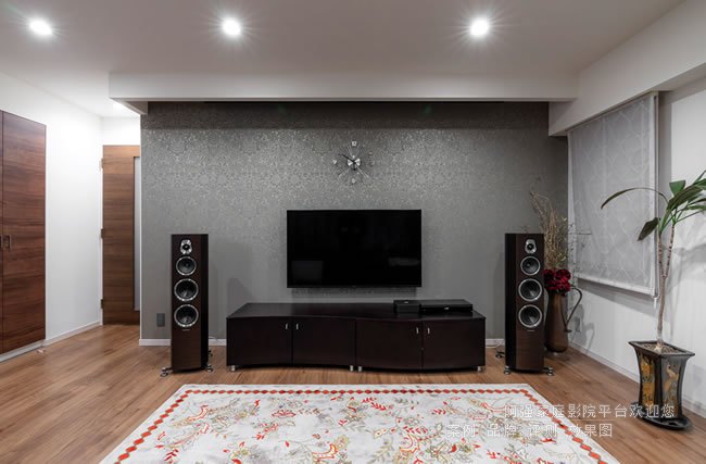 半開放式客廳影音空間音頻使用立體聲音樂和多聲道家庭影院功能,來滿足多種聽音需求,而視頻則使用了JVC 4K投影機投120英寸畫面和55英寸的平板電視來使用,立體聲系統與德國歷史悠久的電子管放大器品牌OCTAV的前級主放大器“V110”,以及配備Dennon AV放大器的5.1系統結合。V110具有直通功能,因此觀看家庭影院時無需更換線纜即可將V110作為功率放大器使用。