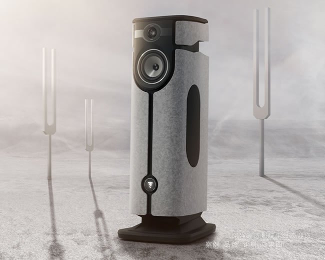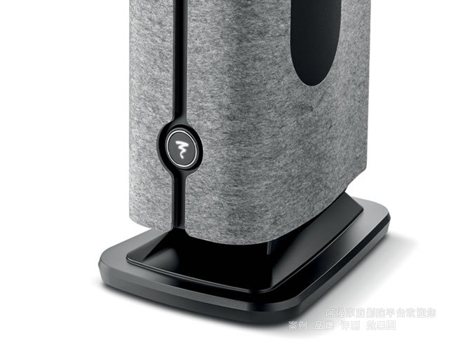 側板被設計成既可浮動又可拆卸,為揚聲器增添了靈活多變的元素。這些面板采用了毛氈中一種因耐用且美觀而得名的 OEKO-TEX® 認證材料。面板線條精致,在前端包含有標志性的凹槽,用以優雅地固定帶背光的FOCAL標志。位于面板后方的低音揚聲器則巧妙地集成于兩側,進一步增強了整體聲音的擴散效果。