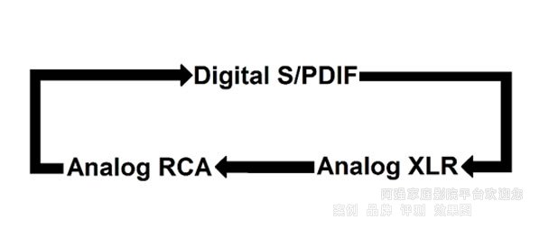 • 右按鈕:用于選擇數(shù)字 S/PDIF 輸入、模擬輸入(RCA & XLR)以及靜音/取消靜音功放。