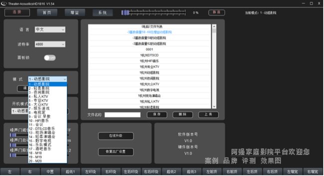 分頻與延時控制:通過專用PC調音軟件,可對每路輸出進行獨立的高通/低通濾波器設置。延時調整精度達0.1ms,確保多座位環境下的聲像同步。