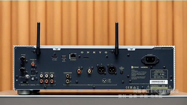P-80的內(nèi)部擁有豐富的接口,其中,模擬輸出部分均提供平衡和非平衡輸出,而且還額外增加兩路低音輸出,可以連接兩個低音音箱功能