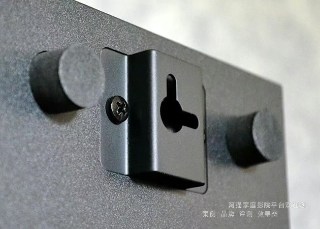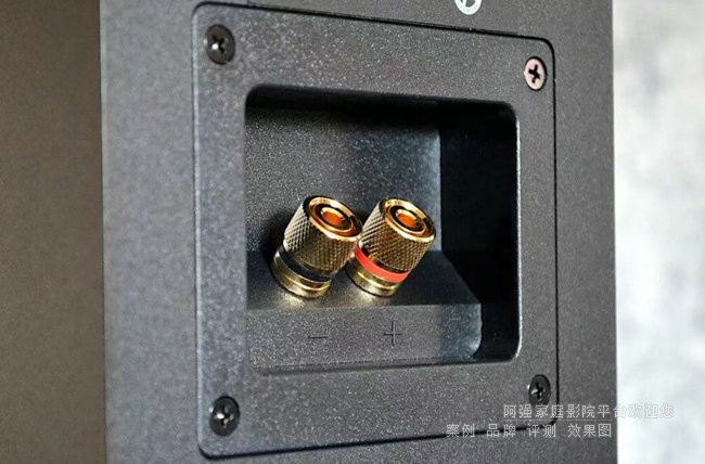 K50 前置中置右置(LCR)揚聲器的擋板處同樣配備了上述兩種驅動單元,與 K40T 一樣采用密閉式結構設計,無導向孔,因此壁掛安裝對用戶而言毫無難度。箱體出廠已預裝鑰匙孔支架和墊片,可保護音箱線免受彎折等損壞;端子采用高品質鍍金螺絲,甚至可兼容香蕉插頭 —— 這在該價位段產品中實屬難得。嵌入箱體的接線盒端子略微傾斜,即便用戶靈敏度不高,也能輕松操作。