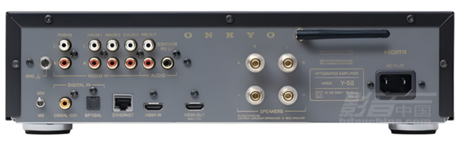 Y-50背面接口比Y-40多了低音炮輸出,HDMI輸入以及MM/MC切換,接線柱也得到升級