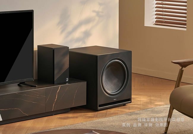 相比之下,有源低音炮將所有所需元素集成于一個封裝中——低音單元、電子線路電平分頻器和專用功率放大器。后者的功率范圍從幾百瓦到超過一千瓦不等。盒子上提供了分頻器頻率、相位和電平控制,以及其他可能的改進。有源低音炮更容易使用,也能與日常音箱集成。它們只需要AV接收機低音炮輸出的低頻效果器(LFE)輸入,就可以使用了。值得關注的品牌包括SVS、KEF、Monitor Audio、DALI和REL聲學。
