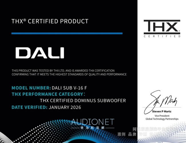 DALI表示,該廠長(zhǎng)期以來(lái)都將「強(qiáng)化家庭劇院領(lǐng)域的市場(chǎng)地位」視為重要的策略目標(biāo),而取得THXCertifiedDominus認(rèn)證,對(duì)SUBV-16F而言不只是質(zhì)量背書(shū),更是一項(xiàng)強(qiáng)而有力的宣示,證明DALI即使在最嚴(yán)苛的家庭劇院環(huán)境中,依然能提供真正出色的超低音表現(xiàn)。