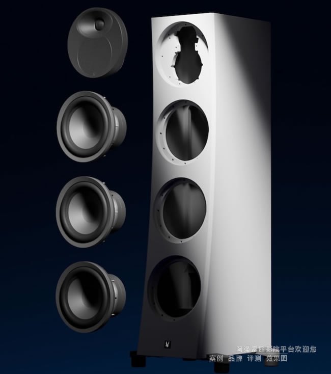高頻由一臺28毫米鋁鎂高音單元處理,旨在平衡細節、伸展和動態能力。高音單元安裝在可控指向性波導中,有助于管理色散并提升與中頻的整合度。這種方法旨在保持清晰度和精確度,同時確保高頻能量均勻且準確地朝向聽音位置。