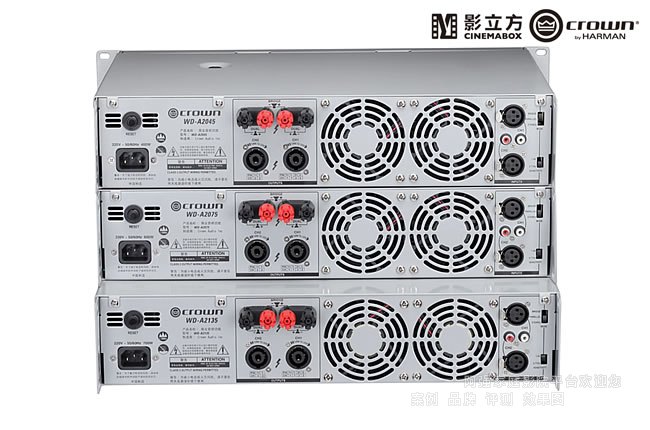 皇冠Crown WD-A系列影院功放是專為影院設(shè)計(jì)的高性能、高穩(wěn)定性的雙通道系列功放。它包含三個(gè)型號(hào)-WD-A2045,WD-A2075和WD-A2135。在4歐負(fù)載下,WD-2045提供雙通道450W輸出;WD-2075提供雙通道750W輸出而WD-A2135提供雙通道1350W輸出。通過(guò)前面板上的狀態(tài)指示燈,功放狀態(tài)一目了然。另外它配備了RCA和XLR輸入接口、0.755V或1.4V可選擇的輸入靈敏度、SPEAKON輸出接口和接線柱輸出接口、立體聲/單聲道/橋接輸出模式以及通短路保護(hù)電路。無(wú)論大、中、小廳,還是主聲道、環(huán)繞聲道或者次低聲道,它都能完美控場(chǎng)。